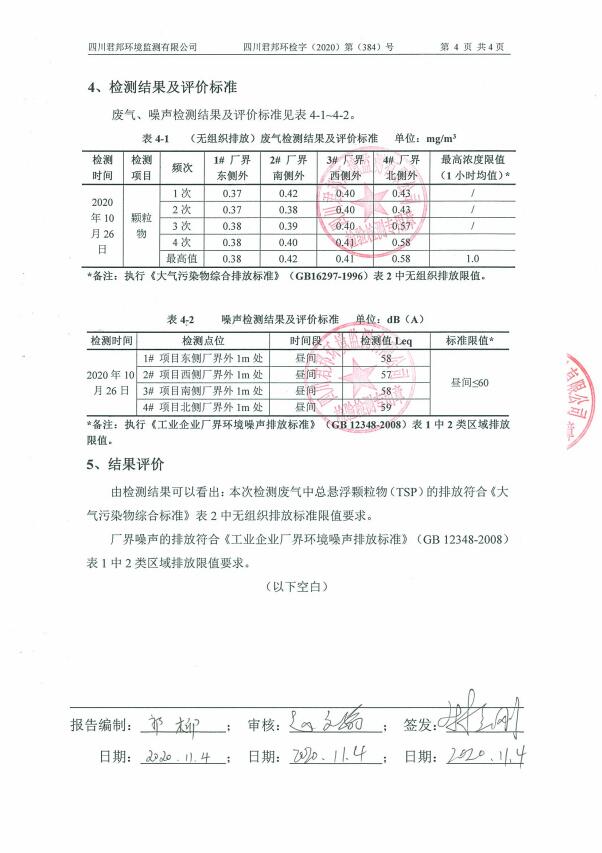 自行检测完成情况相关材料——HTH华体会体育登录入口hth.com 2020年污染源检测报告